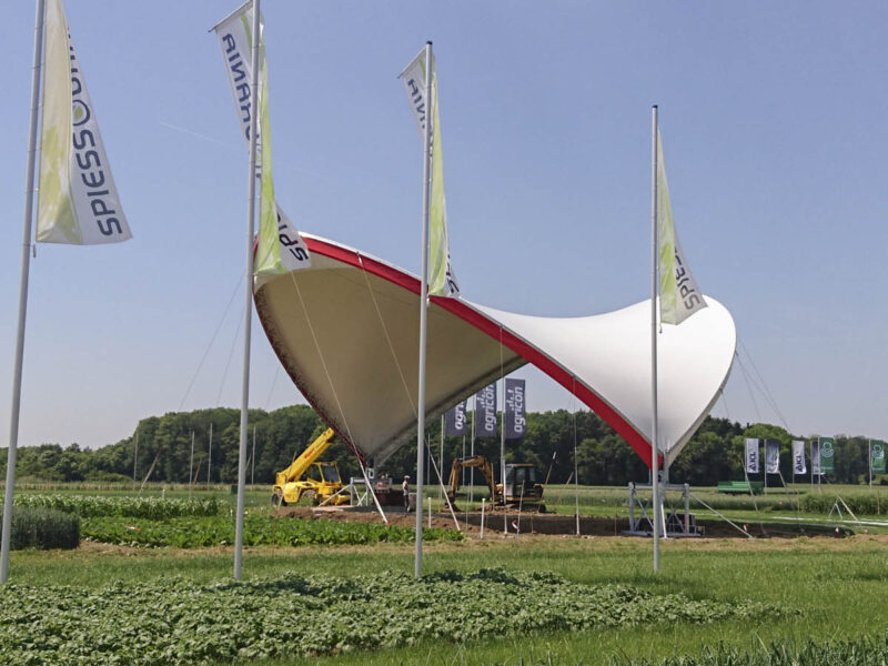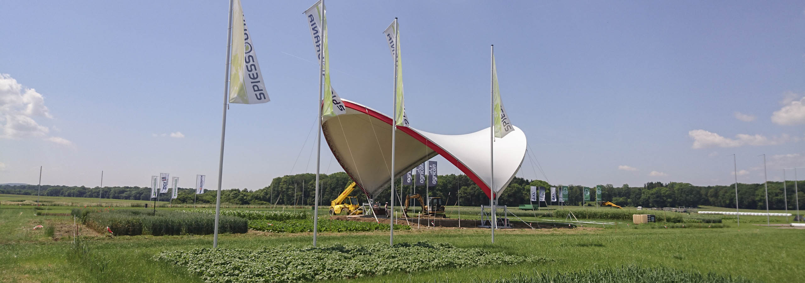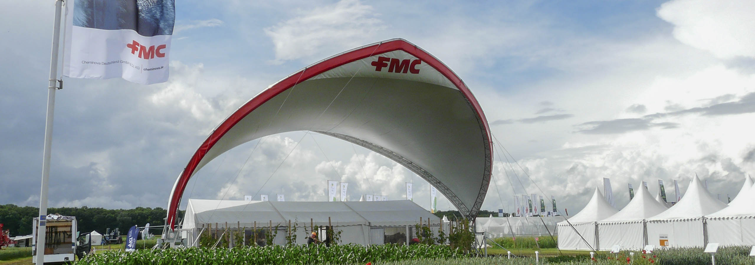 On June 14th of this year, the Field Days of the German Agricultural Society took place again, this time at Gut Mariaburghausen in Haßfurt in Lower Franconia. Over the three event days, more than 300 exhibitors and nearly 22,000 visitors gathered on the grounds. In addition to live machine demonstrations, numerous presentations were also held. Among others by the company “FMC”, which booked us for its location. “FMC” distributes high-quality plant protection products for agriculture and special crops in Germany. Not only through the use of our completely open 18×21 could “FMC” draw attention to its stand, we also used special branding tools to give the tent stand an individual touch.
