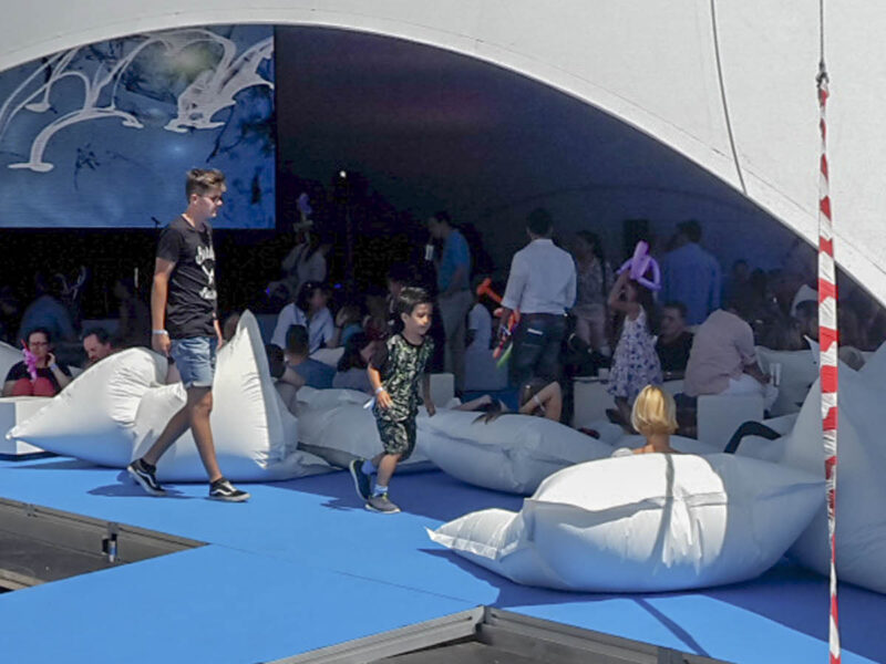 Concrete bases, green areas and street lamps presented tricky conditions during assembly, which however posed no problem thanks to the use of our Opera System floor.