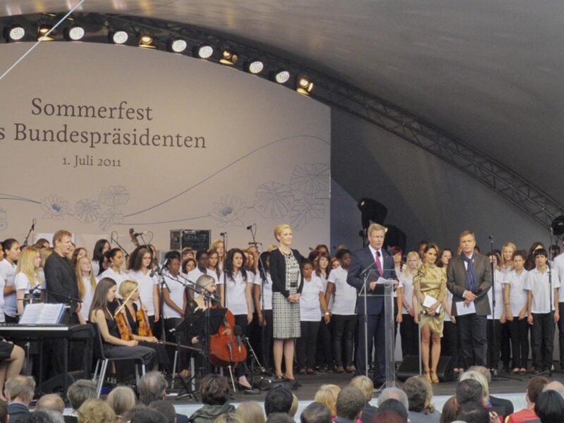 This year too, the traditional Federal President’s summer festival took place on July 1, 2011. From across the entire federal territory, about 2,000 volunteers were invited to celebrate the festival under the motto “Promoting Cohesion”. Some of them gave a small insight into their volunteer work and presented their projects. The Federal President and his wife Bettina were pleased to welcome children and young people to the summer festival for the first time this year. And so among the approximately 5,600 guests, alongside prominent figures from politics and society, there were also about 600 children.