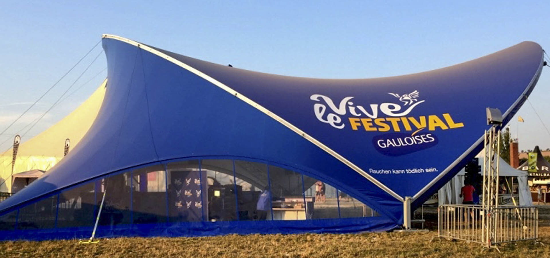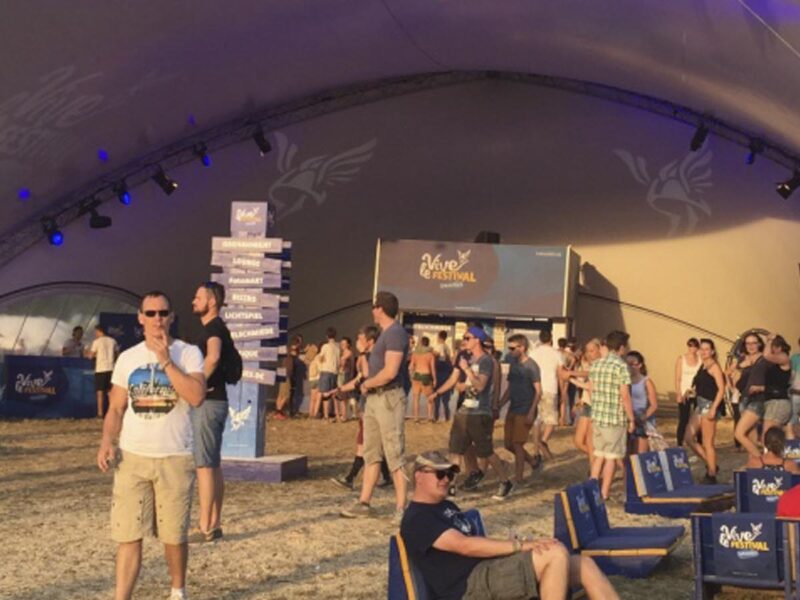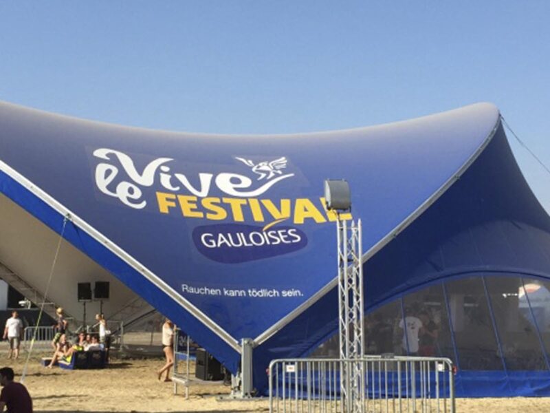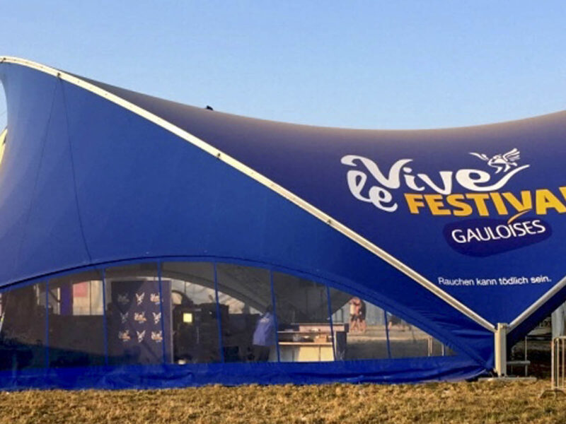 This year we were once again able to provide eye-catching and successful brand appearances at festivals with our tents. With the two sizes 18×21 and 10×12, we equipped six festivals throughout Germany. Two completely new tent membranes were printed in the brand’s own colors and with the brand logo. For our two branded tents, we also supplied the lighting, sound and stage technology.