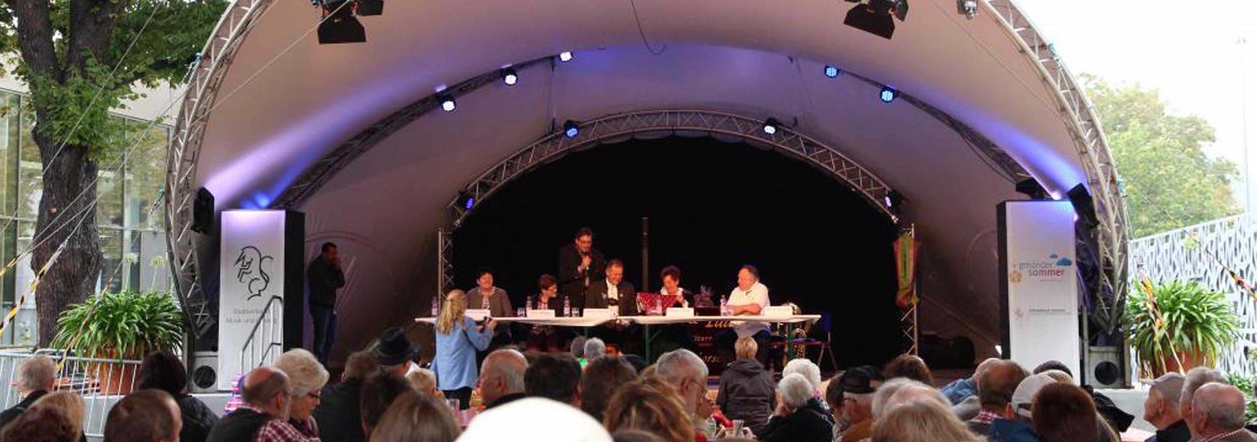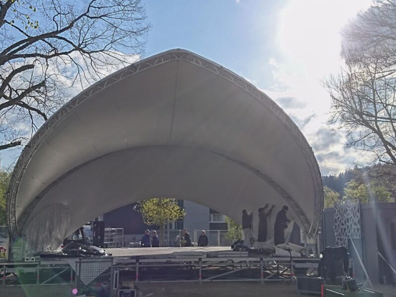 As perfect sun and rain protection, the 10×12 served not only for the opening event, but was in stationary use all summer long. The program included various events such as concerts, parties, cabaret, literature, theater and much more.