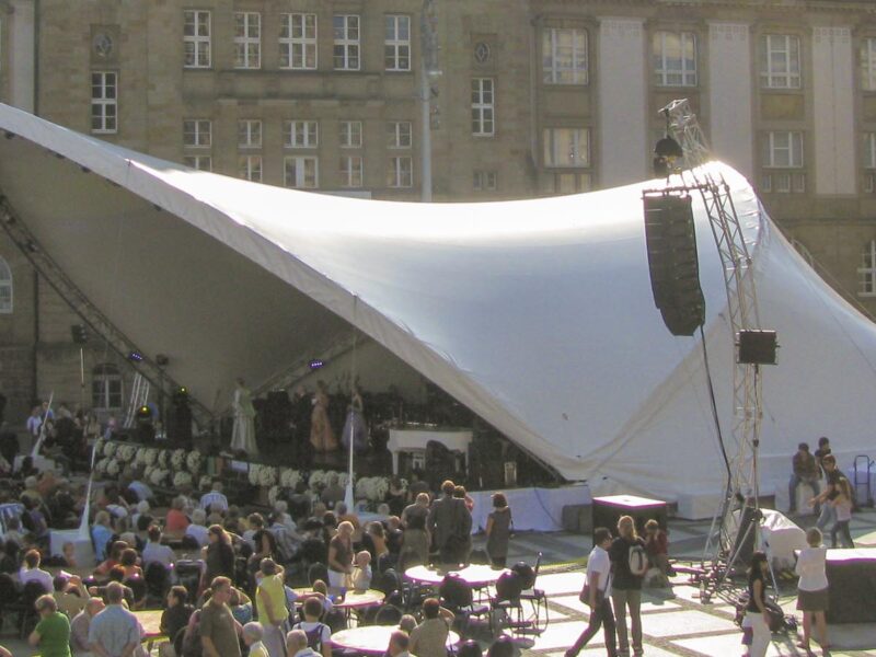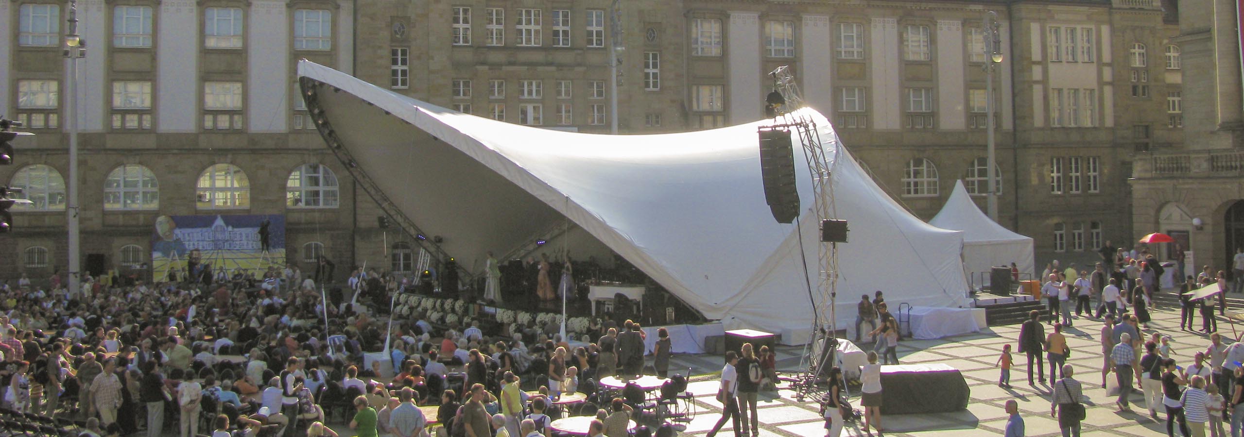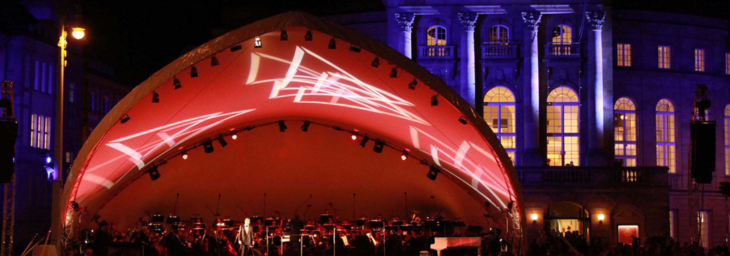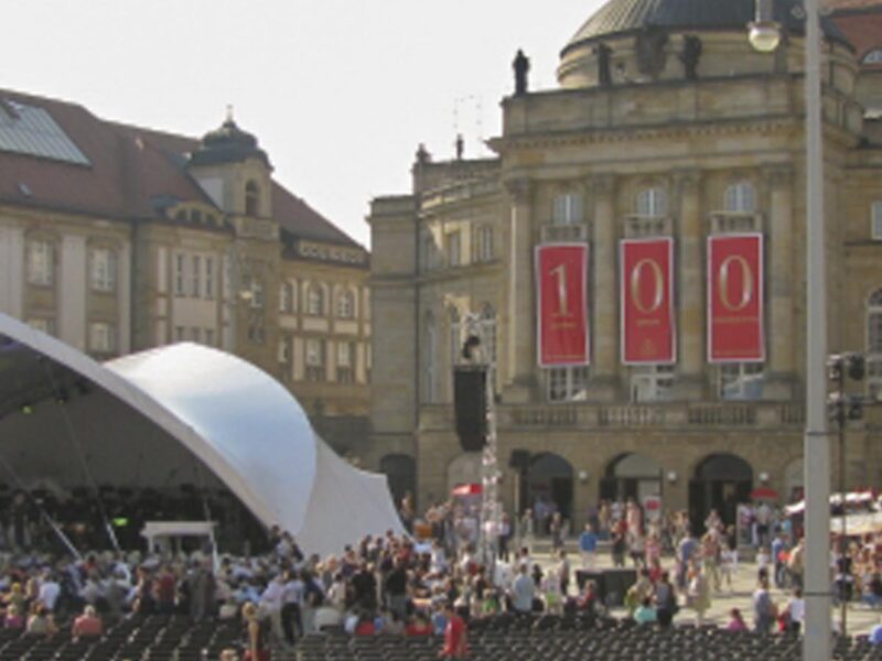Raj Ullrich, Directorul Tehnic al Operei, a pus accent deosebit pe aspectul elegant al acoperirii. În același timp, scena trebuia să găzduiască 106 de muzicieni și să ofere o acustică excelentă. Toate acestea le-au găsit locuitorii din Chemnitz în sistemul nostru de acoperire Opera-Tent.
