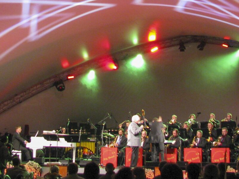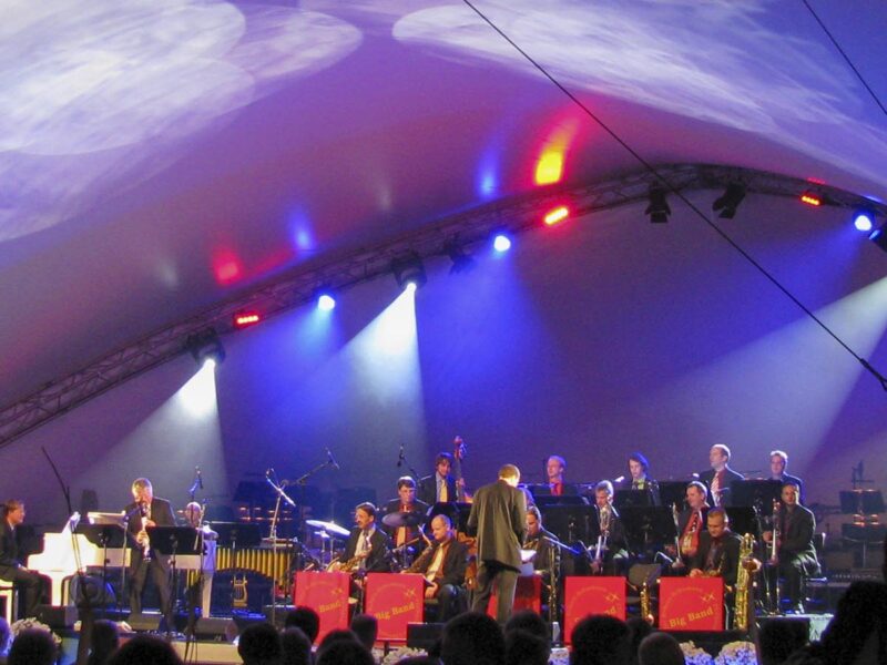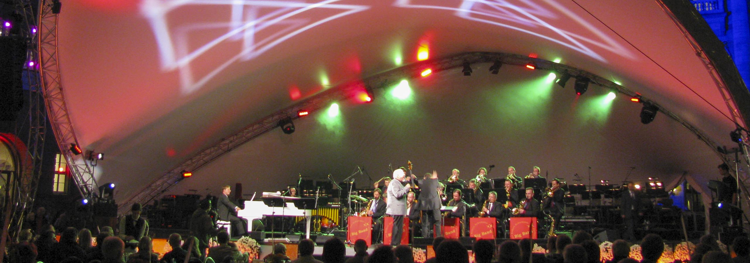 De asemenea, ne-am ocupat de iluminarea scenei și a clădirilor din jur. Pentru aceasta am furnizat în total 36 de proiectoare LED de înaltă performanță, 8 proiectoare Moving-Head, precum și diverse proiectoare cu lentile treptate.