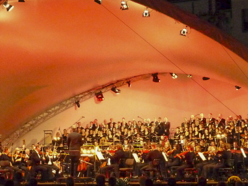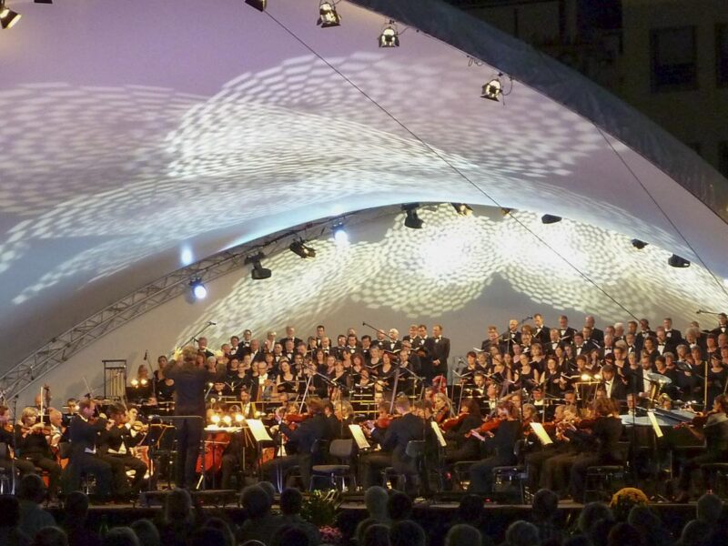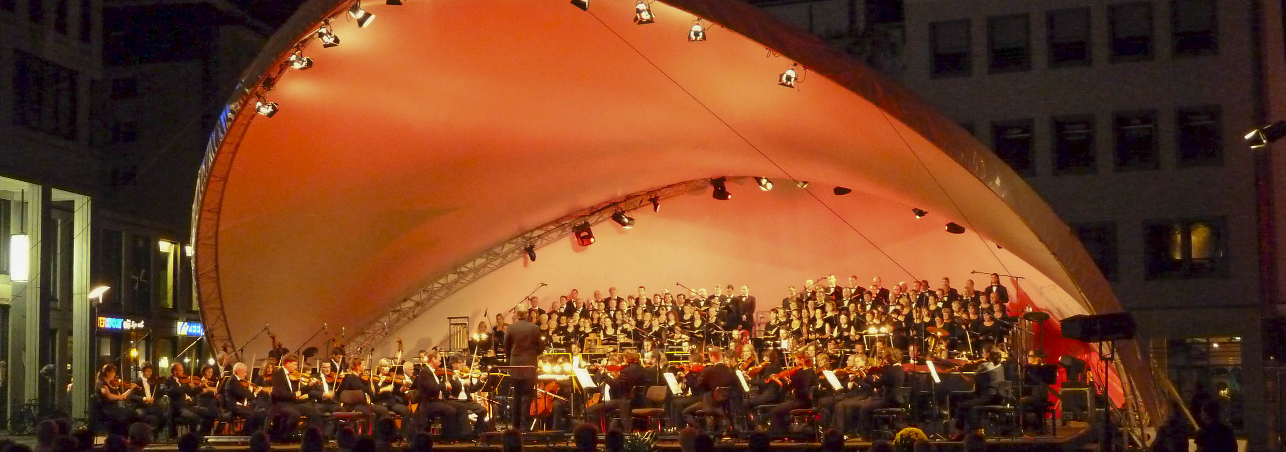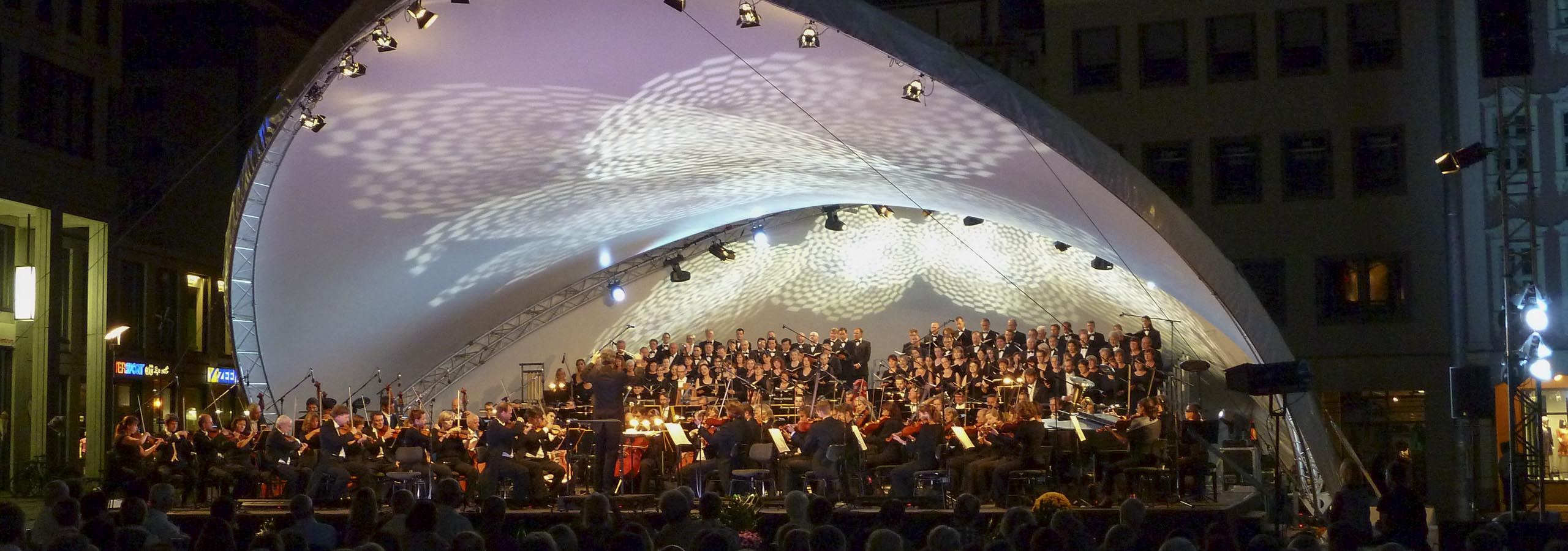 Locuitorii din Chemnitz știu să sărbătorească! Și aceasta pentru a treia oară în acest an alături de noi. Pentru concertul final al săptămânii festive cu ocazia aniversării de 100 de ani a Noului Primărie, Opera-Tent a livrat din nou acoperișul scenei incluzând 288mp de scenă încorporată, precum și întreaga tehnologie pentru evenimente. Acoperișul nostru a oferit protecție Filarmonicii Robert-Schumann cu peste 200 de membri împreună cu corul, care a interpretat cantata scenică „Carmina Burana” de Carl Orff.