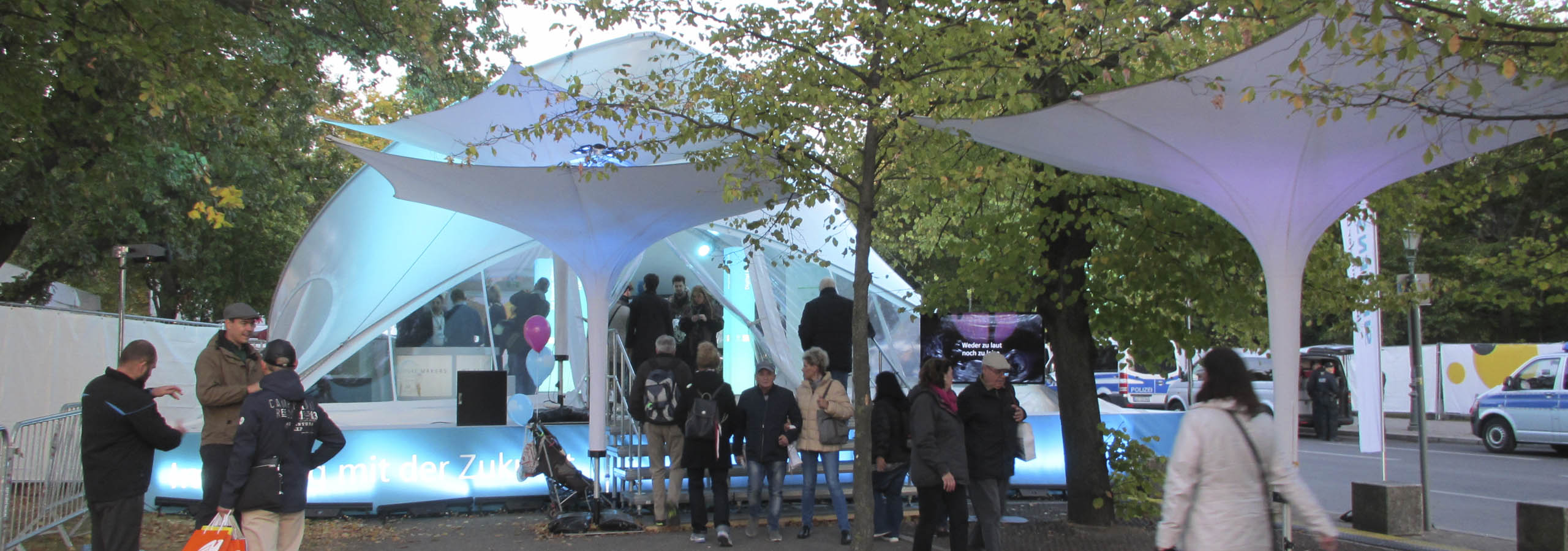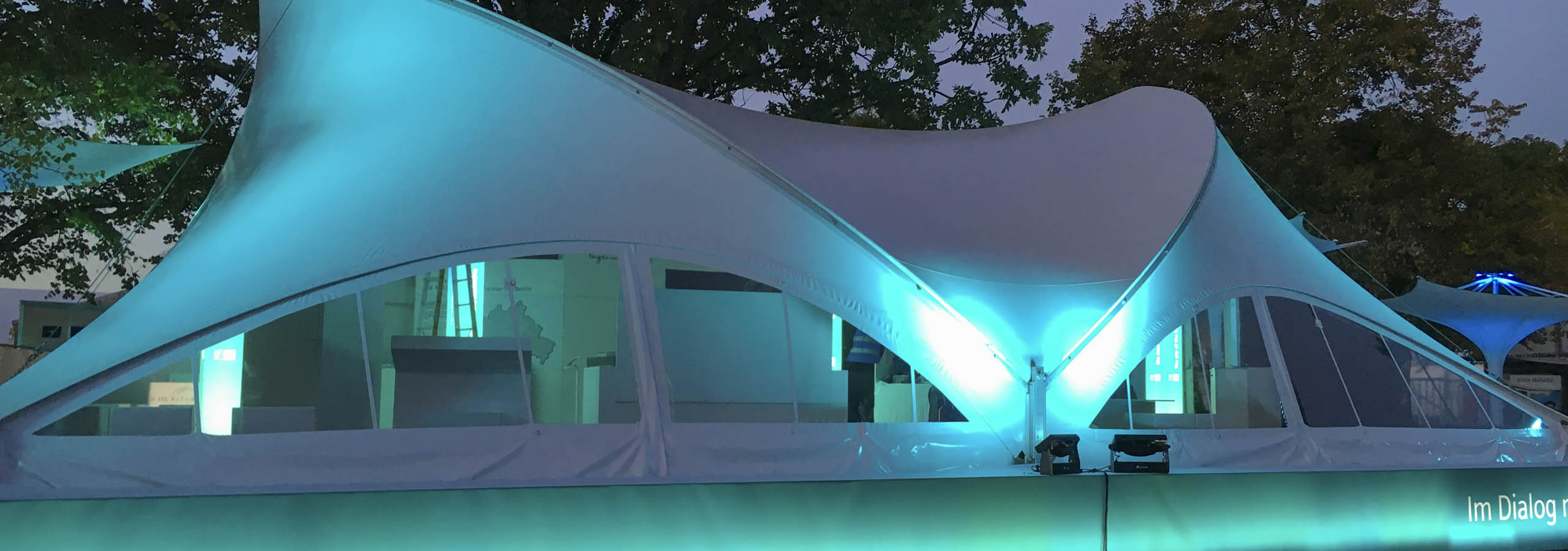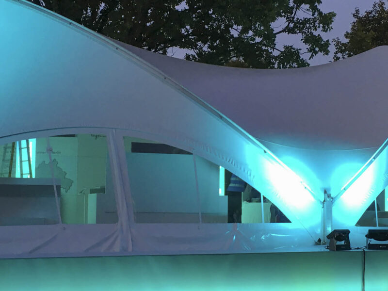 De aceea, stâlpii de beton existenți pe șantier și o pantă de 30 cm la Bürgerfest pentru Ziua Unității Germane nu au mai reprezentat o problemă. În plus, balastul necesar pentru cort a putut fi integrat în construcție.