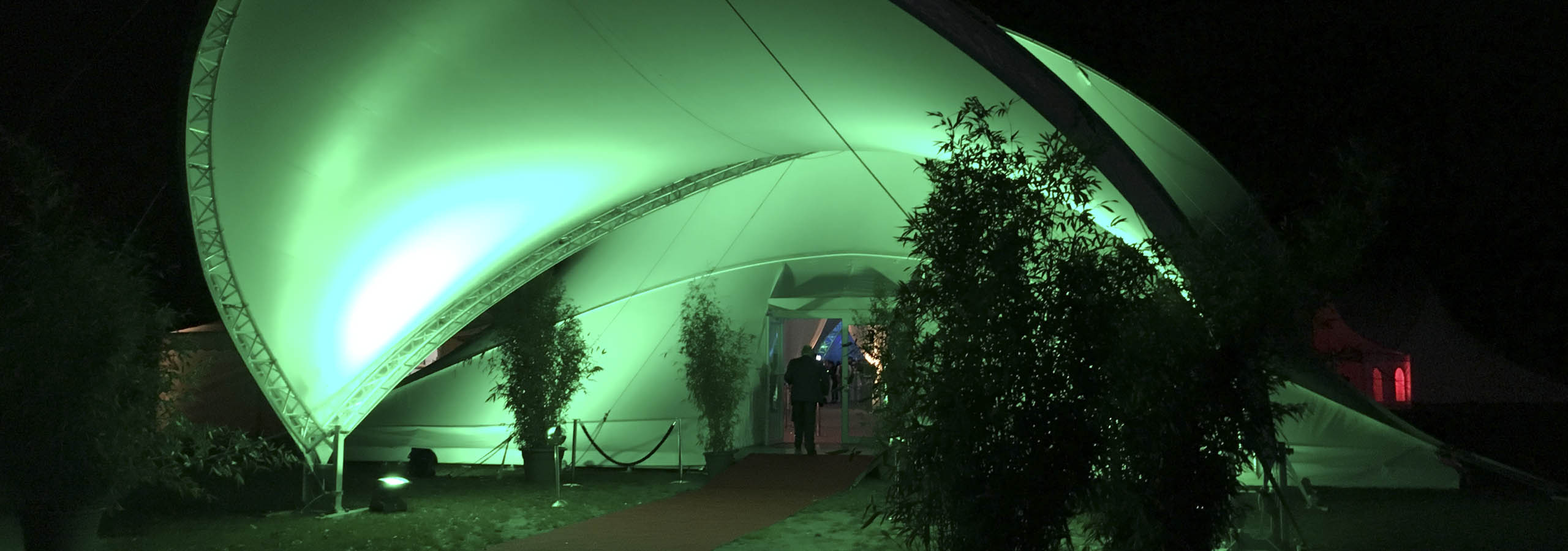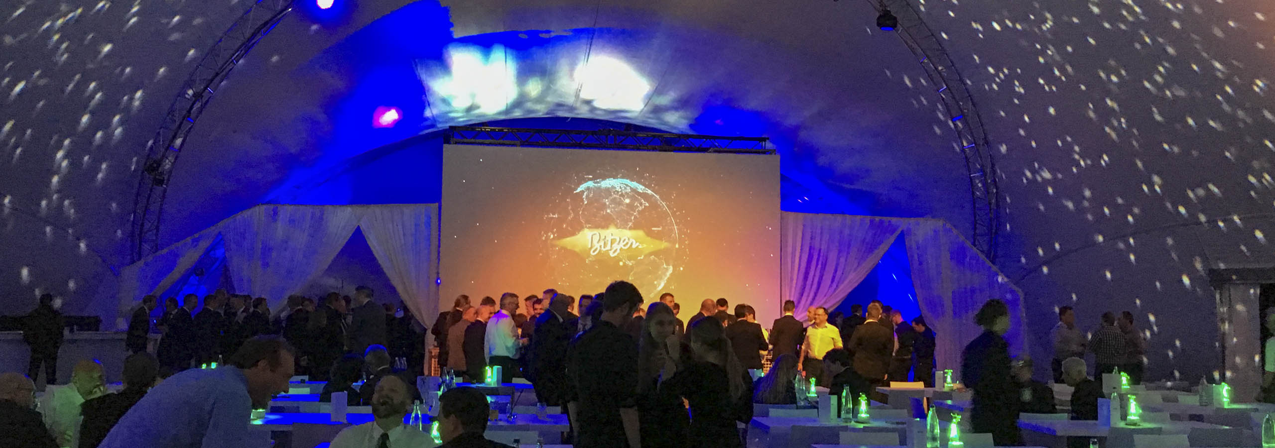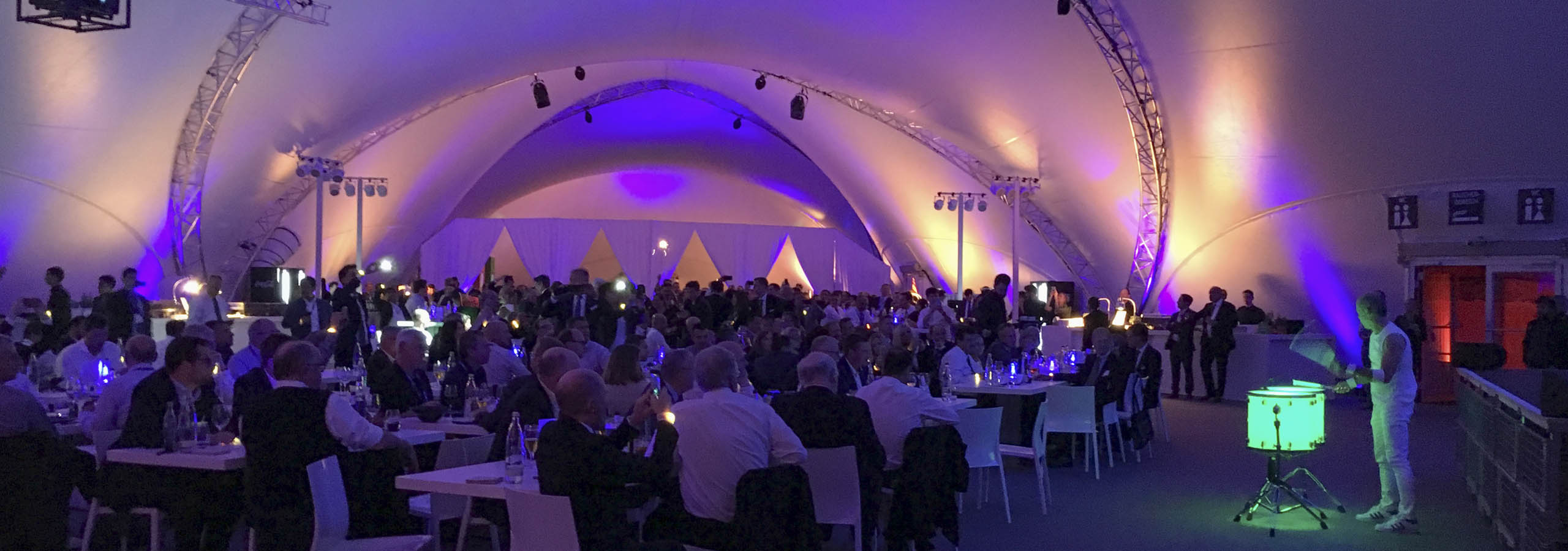 Am construit pentru clientul nostru Bitzer o variantă Multi de 18×21. Aceasta a servit ca locație elegantă pentru un eveniment de seară pentru clienți în timpul târgului „Chillventa”.