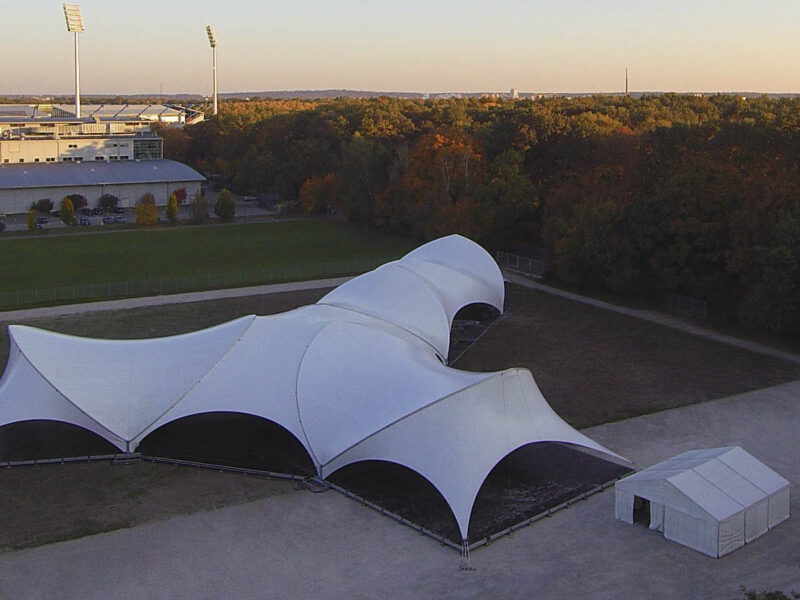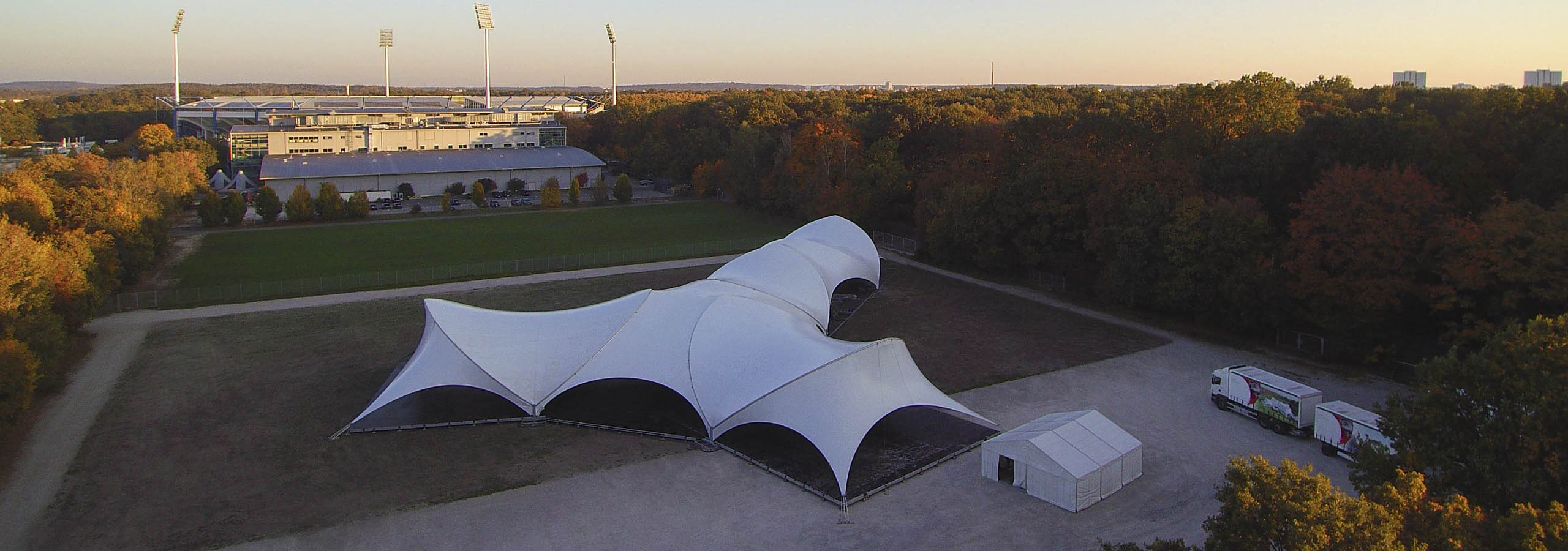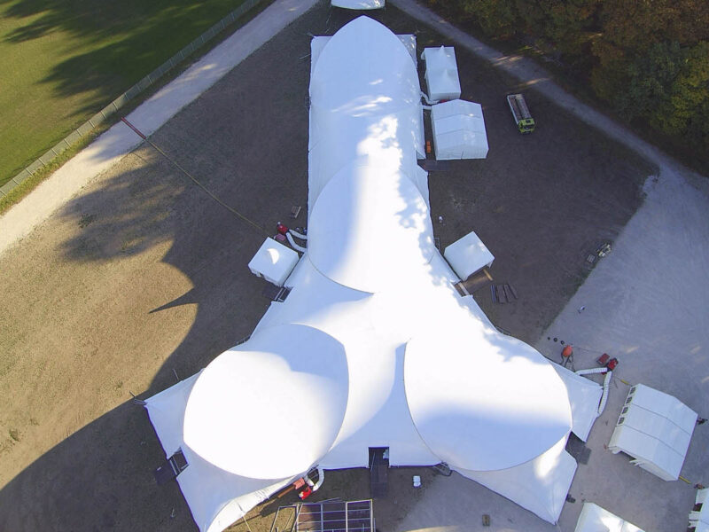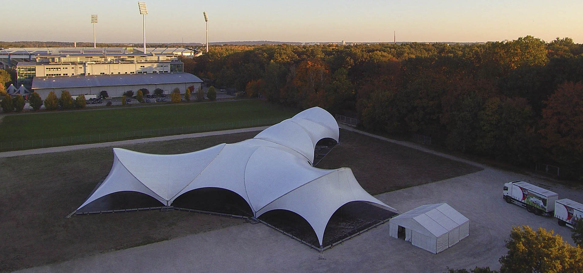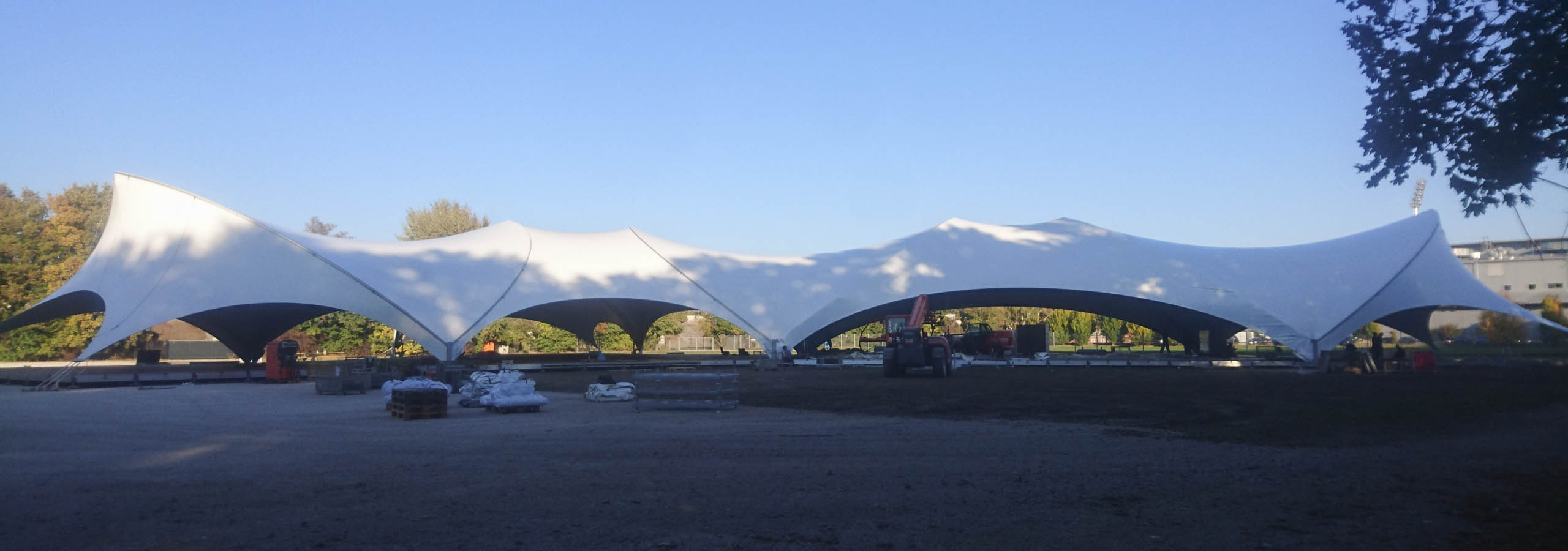 Prin conectarea unei variante Duo la o variantă Triple s-a creat în cinci zile un peisaj de corturi uimitor și neobișnuit de 2200 m².