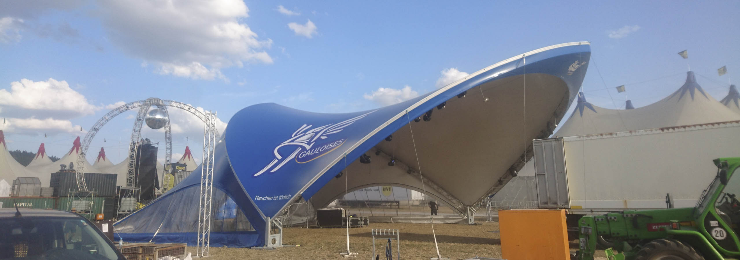 Pentru turul 2018 „Vive le Moment” am produs noi membrane cu brand. Prin aceasta marca a putut fi din nou comunicată în mod remarcabil, un adevărat „eye catcher” pe festivaluri.