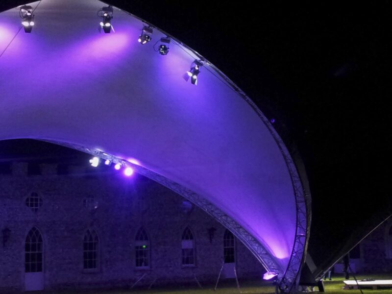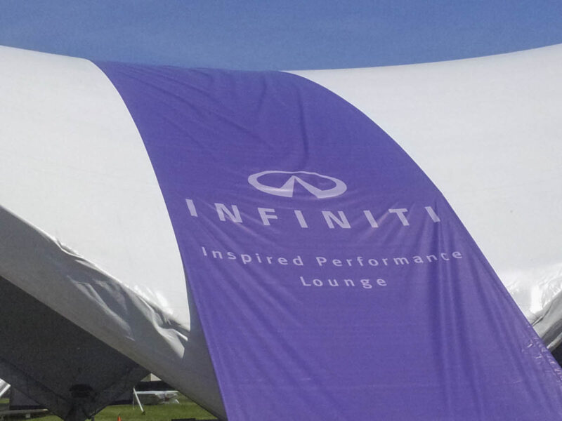 Ca protecție împotriva intemperiilor au servit două dintre corturile noastre Opera în versiunea deschisă. Pentru a face marca vizibilă în mod clar în exterior, unul dintre corturile noastre a primit un banner cu branding în culorile companiei și cu logo.