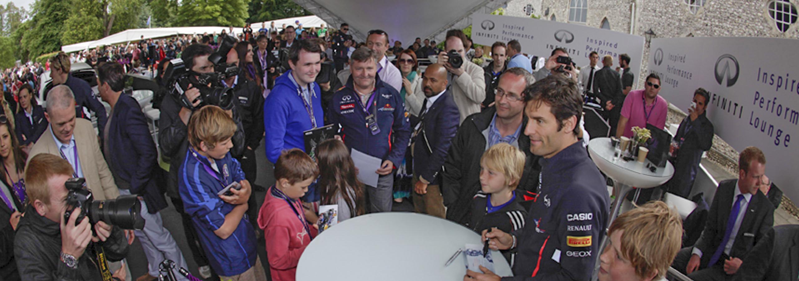 Marca auto în ascensiune Infiniti și-a prezentat în Laundry Green al proprietății modelele actuale precum și mașina de F1 Red Bull a lui Sebastian Vettel.