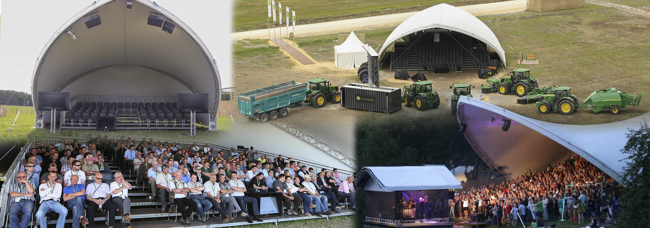 Die Opera Grandstand ist eine spezielle Anwendungsart des Opera Zeltsystems. Hier werden in die Singlevariante offen oder einseitig geschlossen Tribünen eingebaut. So entsteht eine besonders stilvolle und effektive Zuschauertribünenüberdachung. Da die Tribüne aus dem gleichen Baukasten wie das Bühnen- und Bodensystem entspringt, besteht die Möglichkeit, die Dächer auch auf die Tribünenkonstruktion zu setzen und damit zu verbinden. Durch die Erhöhung können mehr Sitzplätze untergebracht und steilere Ränge für bessere Sicht gebaut werden. Weiter Vorteile dieses Systems sind die Gründung der gesamten Einheit auch auf unwegsamen Gelände und deutlich effektivere Ballastierung.